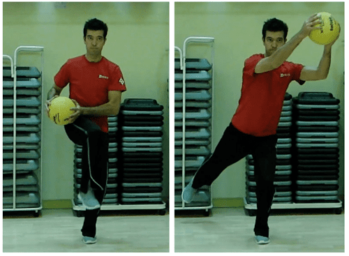 Podremos desafiar aún más nuestra capacidad de control sobre el tren inferior y especialmente la rodilla aplicando fuerzas desestabilizadoras laterales sobre la articulación de la rodilla.